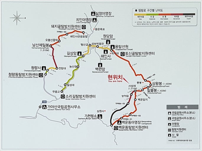 - 코스: 해인사 매표소 → 홍류동계곡 → 해인사 → 상왕봉 (정상)