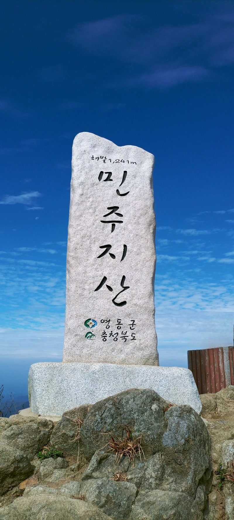 충북 영동군과 경북 김천의 경계에 우뚝 솟은 민주지산(1,241m)‘충북의 지붕’이라 불리는 산입니다.