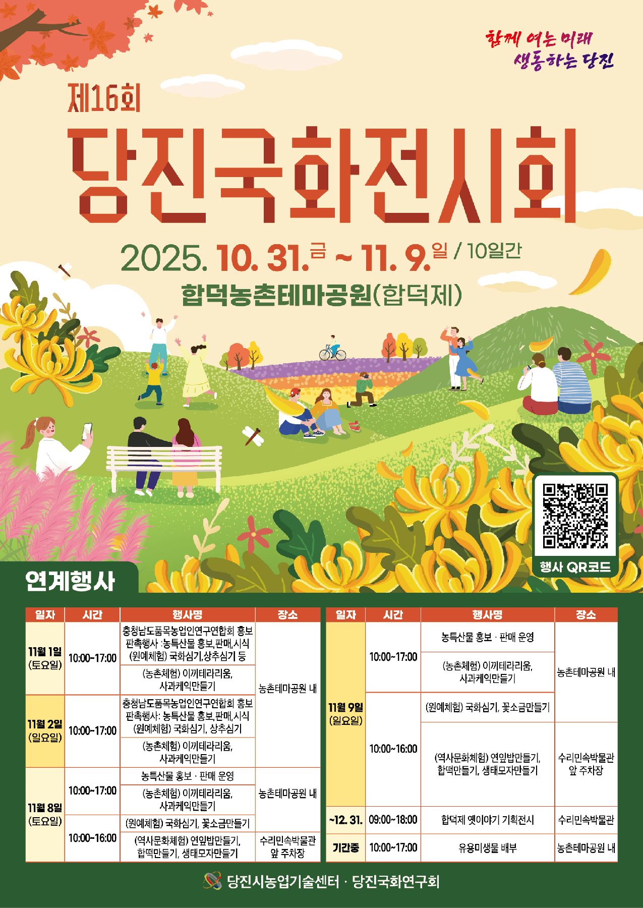 깊어가는 가을, 국화 향기에 취할 수 있는 충남 당진의 대표적인 가을 행사를 소개합니다. 바로 **"2025 제16회 당진국화전시회"**입니다!