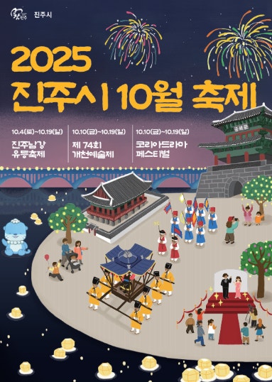 “2025 개천예술제(10/10~19)는 진주 시내 일대에서 펼쳐지는 종합 예술 축제로, 낮에는 음악·미술·공연의 향연을, 밤에는 남강 유등축제로 이어지는 빛의 여정과 결합하여 예술과 빛이 만나는 진주 축제 시즌을 완성합니다.”