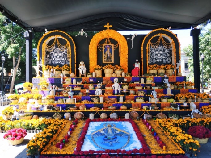 - 🇲🇽 멕시코 – ‘죽은 자들의 날(Día de los Muertos)’: 알레브리헤, 마리골드 꽃, 설탕 해골로 장식.