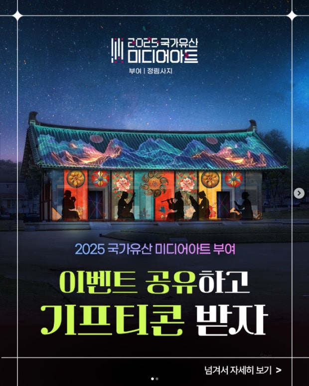 아래는 2025 국가유산 미디어아트 ‘부여 정림사지 – 사비전승’(2025.10.2~10.12 예정)을 중심으로