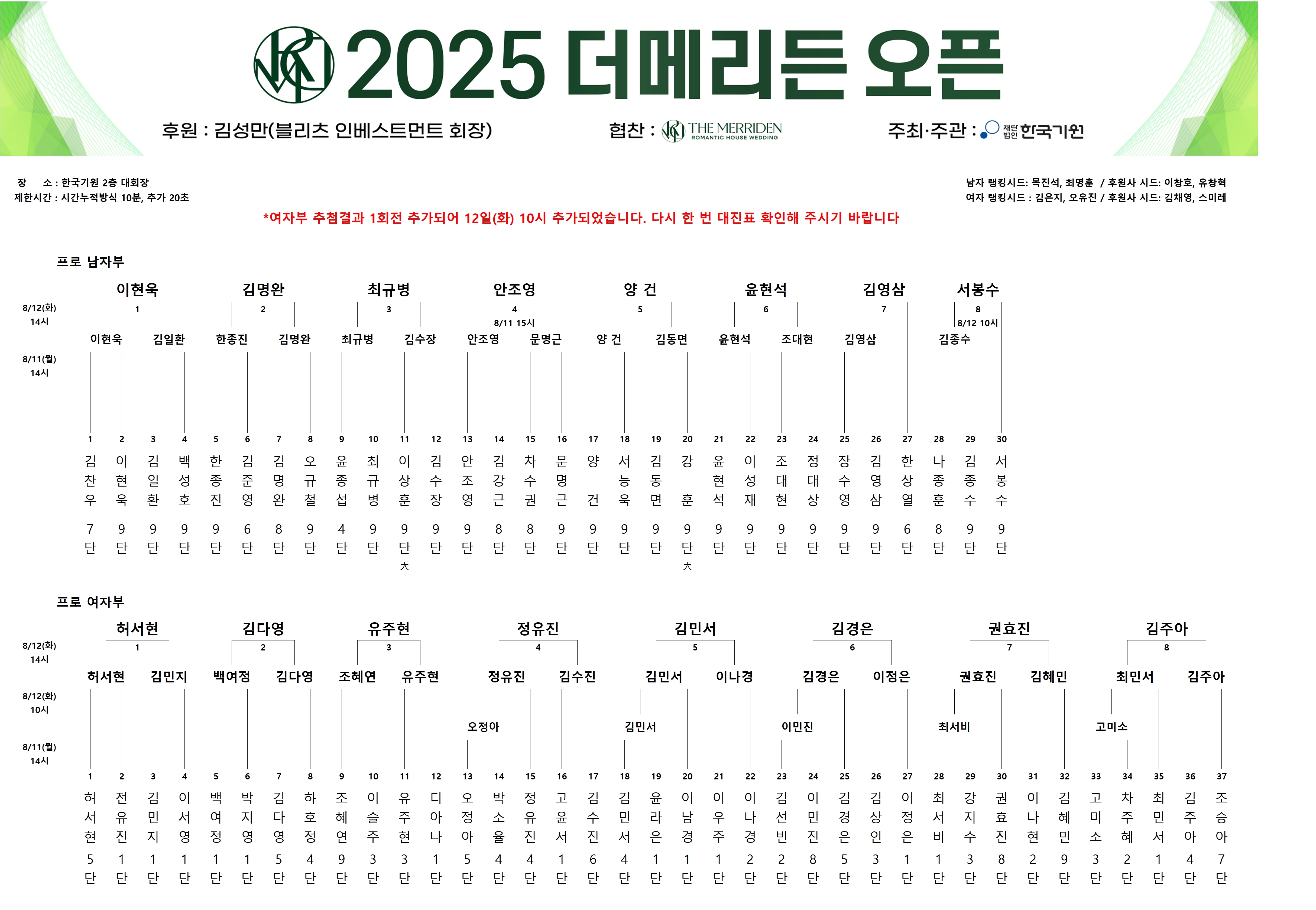 | 시드자 | 목진석, 최명훈(남자); 김은지, 오유진, 이창호, 유창혁, 김채영, 스미레 8명 |