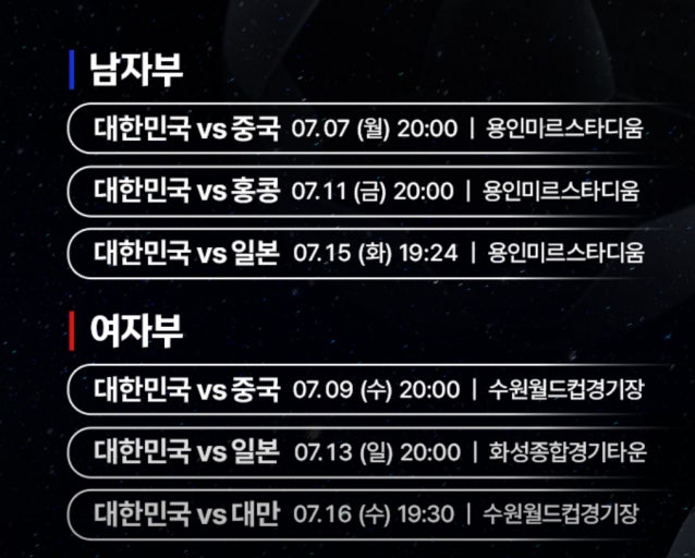 - 공식 유튜브 채널 및 EAFF 홈페이지 일부 제공 예정