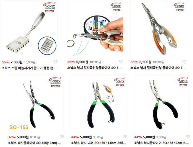 - 낚시용품: 낚싯대, 릴, 찌, 루어용품, 떡밥, 낚시가방 등