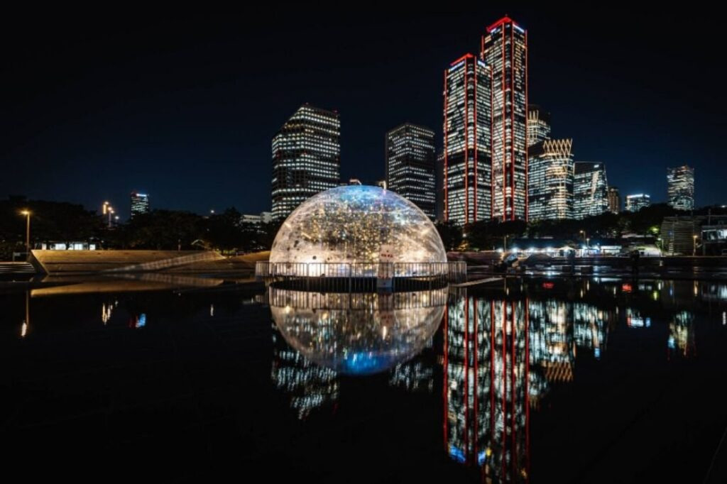 한강 수변이라는 자연적 배경과 서울 도심 조망이 결합된 공간에서, 빛과 영상이 유기적으로 어우러짐. - 밤의 관람 중심