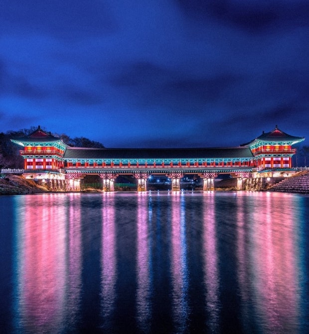 동궁과 월지 야경: 미디어 파사드 공연과 함께 신라 궁궐의 밤을 체험할 수 있습니다.