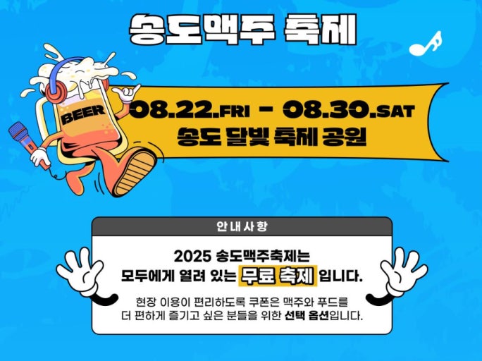 - 행사명: 2025 송도 맥주축제 (Songdo Beer Festival)