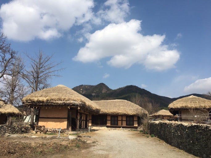 • 포토 스팟: 돌담길, 초가집 앞, 전통 정자.