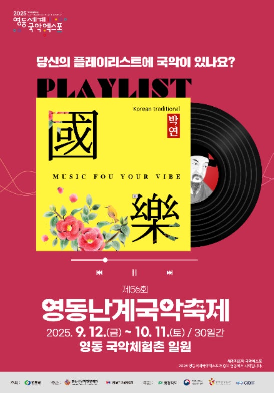 [2025 충북 영동 세계국악엑스포 완벽 가이드] 충북 영동은 ‘국악의 고장’으로 불립니다. 조선 시대 음악의 거장 난계 박연 선생의 고향이자, 매년 국악과 관련한 굵직한 행사들이 열리는 곳이