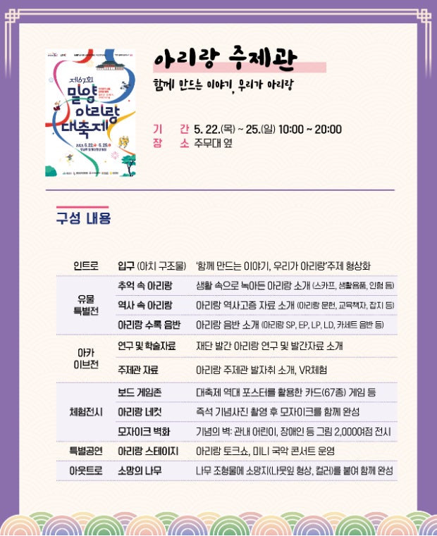 - 주최/주관: 밀양시 / (재)밀양문화관광재단
