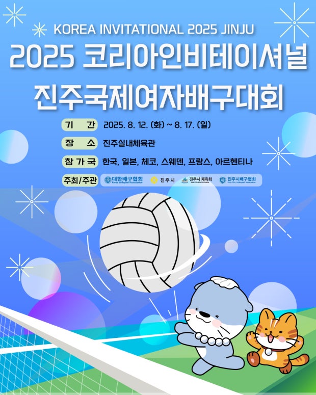 아래는 **2025 코리아 인비테이셔널 진주 국제여자배구대회 (8.12–17)**에 대한 분석 글입니다. 대회 개요, 참가국, 주요 관전 포인트, 부대행사 등을 담았습니다.