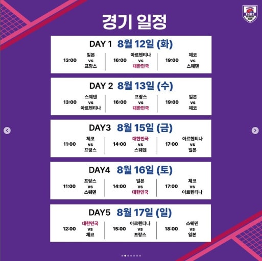| 8월 12일 (화) | 16:00 | 아르헨티나 | 개막전 선전 기대 |
