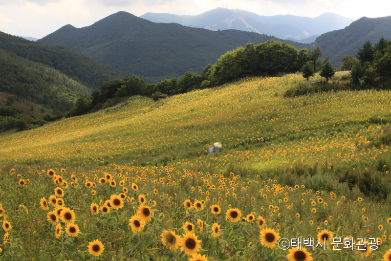 “백두대간 위 100만 송이 해바라기 사이, 예술과 자연이 어우러진 힐링 여름여행—태백 해바라기축제에서 만나요!”