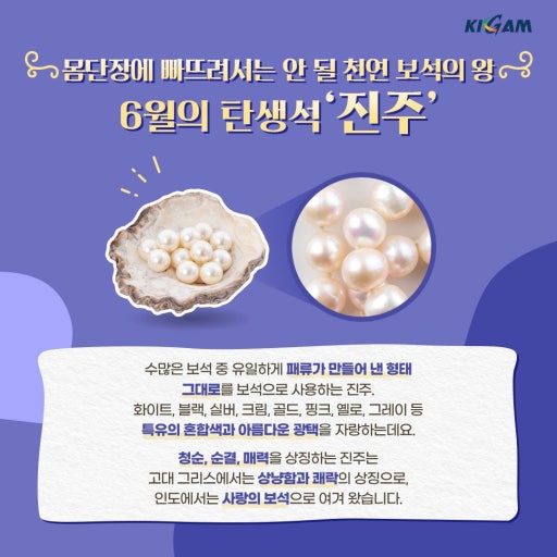 진주는 바다에서 발견된 보석으로 건강과 장수, 그리고 부를 상징하는 탄생석입니다.