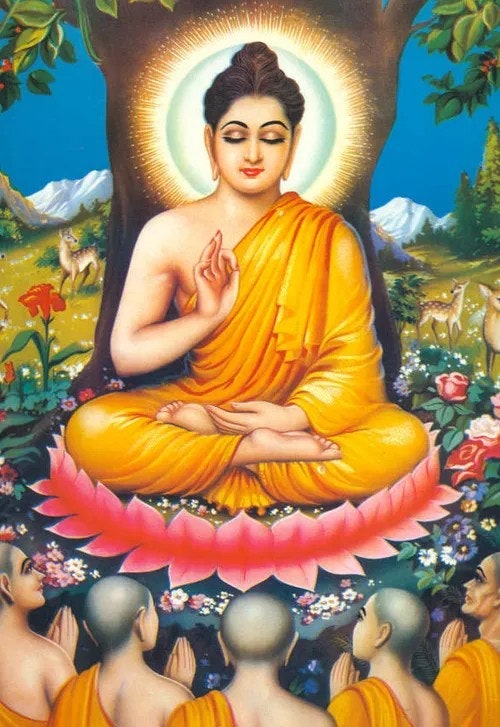 초전법륜: 바라나시 근처 사르나트에서 다섯 비구에게 처음으로 설법. 사성제와 팔정도를 설함.